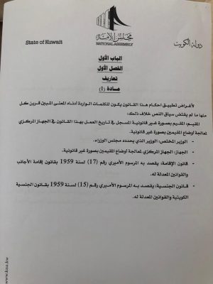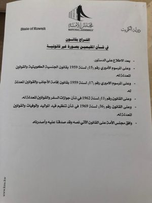 واستكمل ” قانون البدون سنوزعه على الصحافة وهو إجتهاد مني مع مجموعة من النواب وهو ليس قرآنا وقابل للنقاش”.