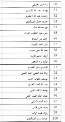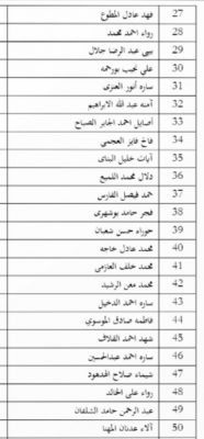 وفيما يلي كشف بأسماء المقبولين في إعلان توظيف مؤسسة البترول الكويتية لحملة الشهادة الجامعية.