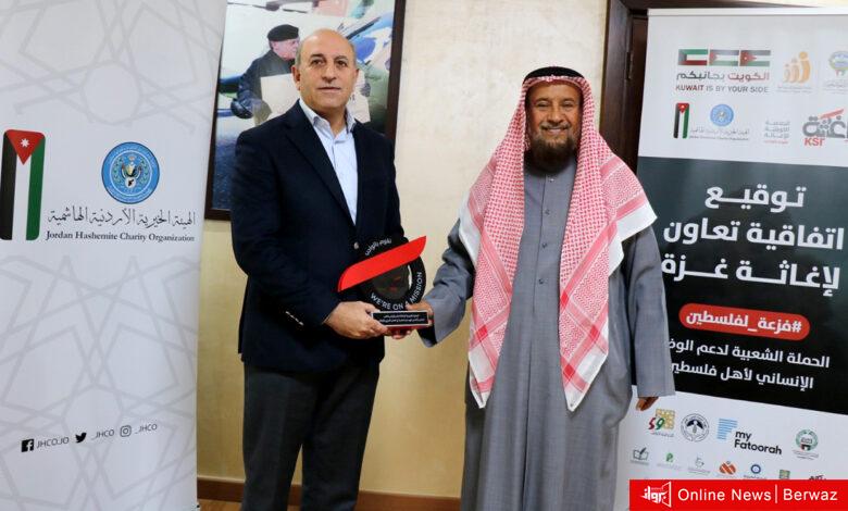 وقعت الجمعية الكويتية للإغاثة اتفاقية تعاون مع الهيئة الخيرية الأردنية الهاشمية بقيمة 500 ألف دولار لتسيير 11 قافلة محملة بالمساعدات الإنسانية والمواد الإغاثية لأهل قطاع غزة.
