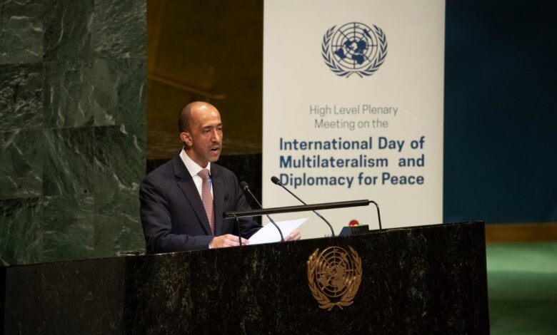 واضاف “ان تعددية الاطراف تشكل صلب النظام العالمي الذي ارتضيناه جميعا مع انشاء منظمة الامم المتحدة قبل اكثر من سبعة عقود وحجر الزاوية الذي يستند عليه هذا النظام العالمي متعدد الاطراف هو ميثاق الامم المتحدة الذي يعتبر صكا للقانون الدولي ويحدد اطارا واضحا لتنظيم العلاقات بين الدول”.