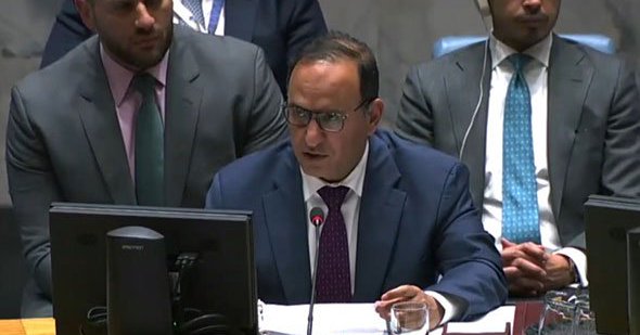 وقال في كلمته خلال ترؤسه الجلسة الأولى بين مجلس الأمن والجامعة العربية بنيويورك إن الاستهداف يأتي ضمن سلسلة مستمرة من الأعمال التخريبية التي تمس سلامة الممرات المائية وتقوض أمن الطاقة في العالم مما يهدد الأمن والسلم الدوليين.