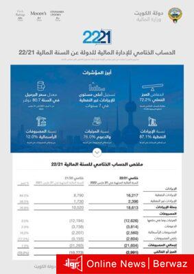 وسجلت الكويت أعلى مستوى للإيرادات غير النفطية في 7 سنوات، كما شهد العجز انخفاضا فعليا بواقع 72.2% مقارنة بالحساب الختامي للسنة المالية 2020/2021.
