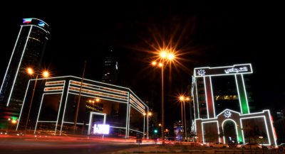 دخلت مباني المؤسسات الحكومية والشركات والبنوك في مختلف مناطق البلاد أجواء الاحتفال بالأعياد الوطنية، حيث تزينت بأضواء علم الكويت وصور سمو أمير البلاد وولي عهده الامين، لتشكل لوحة فنية جاذبة تعبيرا عن مدى الفرح والابتهاج بمناسبة العيد الوطني الـ 58 والذكري الـ 28 لعيد التحرير.