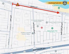 أعلنت الإدارة العامة للمرور عن إغلاق حارة ونصف على شارع التعاون باتجاه المسيلة ابتداءً من تقاطع شارع المعتز حتى تقاطع شارع علي ثنيان الأذينة.