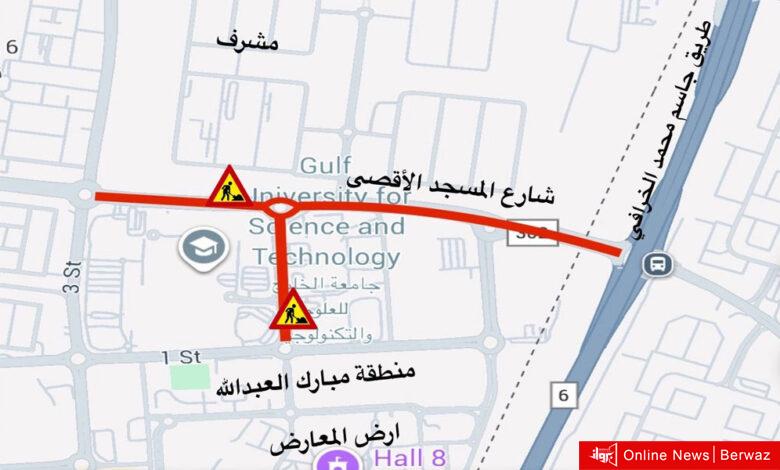 المرور: إغلاق شارع المسجد الأقصى (مشرف ومنطقة مبارك العبدالله) بالإتجاهين