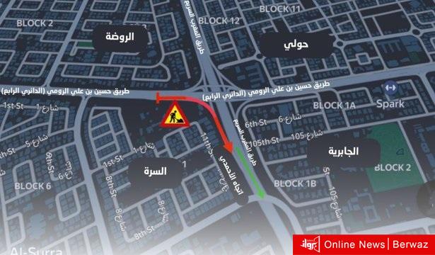 أعلنت الإدارة العامة للمرور، اليوم الجمعة، عن استمرار أعمال الصيانة لتقاطع طريق المغرب مع الدائري الرابع، وسوف يتم البدء بالمرحلة الثالثة فجر يوم السبت الموافق 2025/2/1، وذلك بإغلاق المخرج الفرعي من طريق الدائري الرابع جهة منطقة السرة، للقادم من الدائري الرابع باتجاه السالمية والمؤدي إلى الأحمدي عبر طريق المغرب السريع، وسيستمر الإغلاق حتى يوم السبت 2025/2/8.
