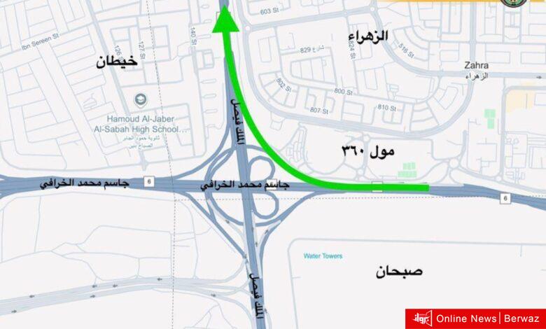 أعلنت الإدارة العامة للمرور، مساء الثلاثاء، عن افتتاح الطريق الفرعي للقادم من طريق جاسم الخرافي (الدائري السادس) المؤدي إلى طريق الملك فيصل (طريق 50) باتجاه مدينة الكويت اعتبارًا من فجر الخميس.