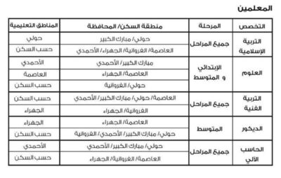 المضف يضع ضوابط جديدة لاختيار مراكز عمل المعلمين الكويتيبن الواصلين للمناطق التعليمية مباشرة من ديوان الخدمة المدنية