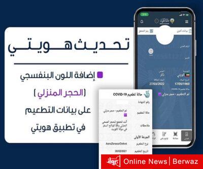 أعلنت الهيئة العامة للمعلومات المدنية عن عمل تحديث فى تطبيق “هويتي”، وذلك بإضافة حالة الحجر المنزلي إلى بيانات التطعيم ضد فيروس كورنا المستجد.