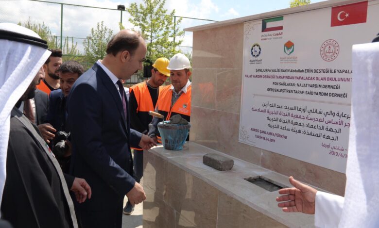 قامت جمعية النجاة الخيرية الكويتية، اليوم الأربعاء، بوضع حجر الأساس لبناء مدرسة نموذجية سادسة للاجئين السوريين بمدينة (شانلي أورفا) جنوب تركيا بحضور والي المدينة عبدالله ايرين.