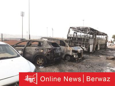 النيران تلتهم سيارة في طريق كبد
