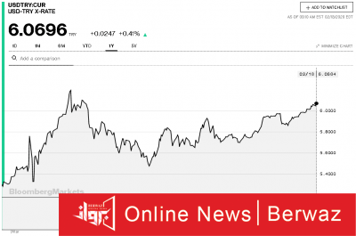 وفي الساعة 09:04 بتوقيت غرينيتش، سجلت العملة التركية 6.0680 ليرة للدولار، بعد أن أغلقت تداولات الاثنين عند 6.0485 ليرة للدولار.وفي ما يلي رسم بياني يظهر منحى تداول الليرة في نحو عام: