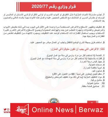 أفصحت وزارة الصحة عبر حسابها بموقع تويتر اليوم الإثنين عن القرار الوزاري رقم 2020/77 الخاص بإعتماد الآلية اللازمة لتطبيق الحجر المنزلي.