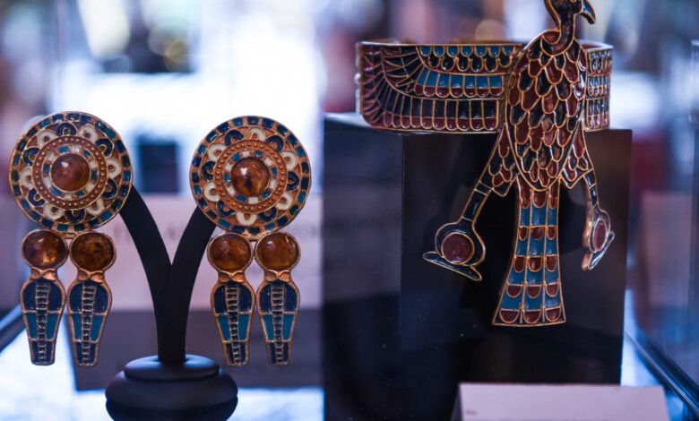 ويوفر المعرض للزوار صورة واضحة للحلي الثمينة وذلك لتقريب المسافة بين تاريخ هذا الفن الاستثنائي والأعمال الاصلية المأخوذة من الرسومات الجدرانية واللوحات والتماثيل القديمة.