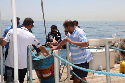 وتخللت الزيارة عدد من الأنشطة ورصد لبعض الملاحظات الخاصة في البيئة البحرية، حيث تم رصد براميل معدنية مجهولة المحتوى أثناء التوجة إلى الجزيرة فتم إزالتها عن طريق استخدام الآليات الخاصة بزورق الهيئة “بيئة ١”.