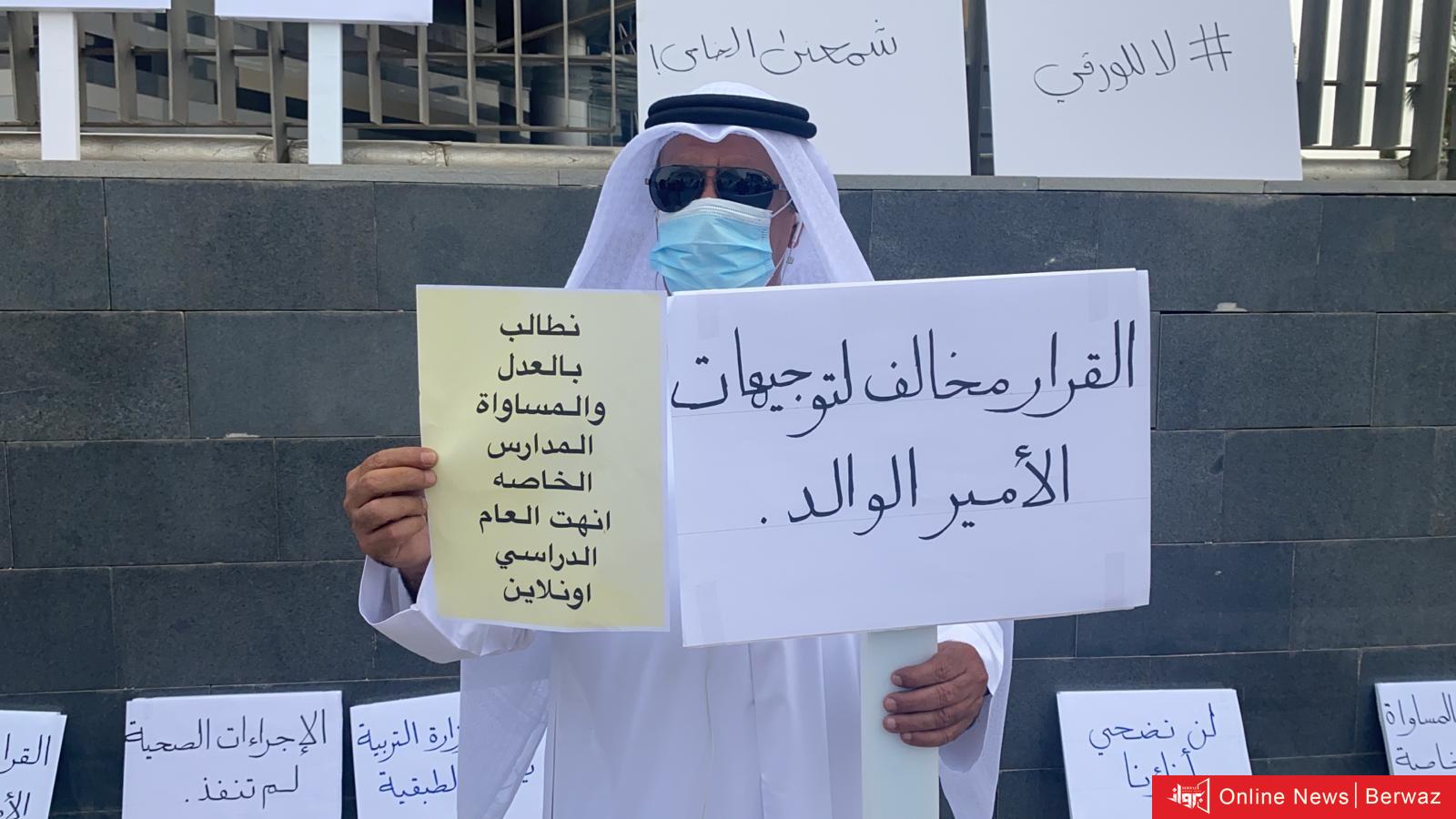 كما دعا المعتصمون أن تكون الإختبارات أون لاين أسوة بالمدارس الخاصة لأن المناهج تم دراستها بنفس الطريقة، مؤكدين أن قرار الإختبارات الورقية مخالف لتوجيهات الأمير الوالد.