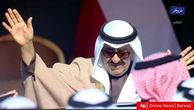 في حين وصل موكب سموه إلى مكان الحفل حيث أطلقت المدفعية (21) طلقة ترحيبية بسموه كما استقبل سموه بكل حفاوة وترحيب من قبل منتسبي الجيش والشرطة والحرس الوطني ثم قام سموه برفع علم الدولة وتم عزف النشيد الوطني.