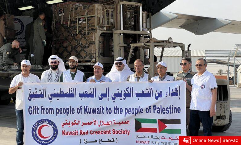 فيما أقلعت الطائرة الأولى من الجسر الجوي الكويتي الإغاثي لقطاع غزة يوم أول من أمس وعلى متنها 40 طنا من المساعدات الإغاثية والمواد الطبية والدوائية العاجلة وسيارات إسعاف تلتها الطائرة الثانية يوم أمس الثلاثاء محملة بـ10 أطنان من المساعدات.
