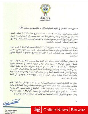 المحور الثالث: الفشل في القيام بالمهام الموكلة له بالتنسيق مع مجلس الأمة.