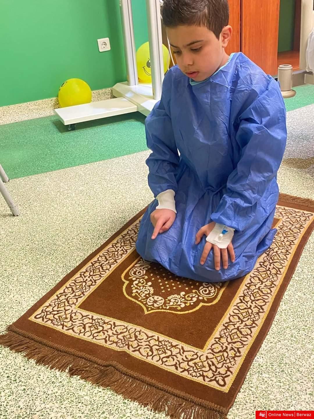 بزي الجراحة.. طفل مصري يحرص على الصلاة قبل دخوله العمليات مناشدا الشفاء من القدير