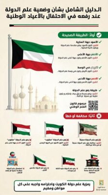 ويأتي هذا الدليل في سياق حرص بلدية الكويت على الحفاظ على هيبة العلم الوطني، وتعزيز الالتزام بالسلوك الحضاري خلال المناسبات الوطنية، بما يعكس صورة تليق بدولة الكويت ومكانتها.
