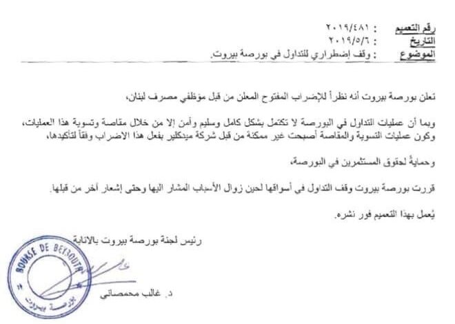 #بورصة_بيروت توقف التداول حتى اشعار آخر