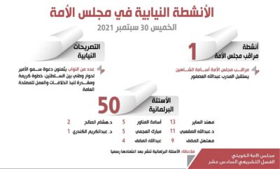 تابع الأنشطة النيابية في مجلس الأمة ليوم الخميس 30 سبتمبر 2021