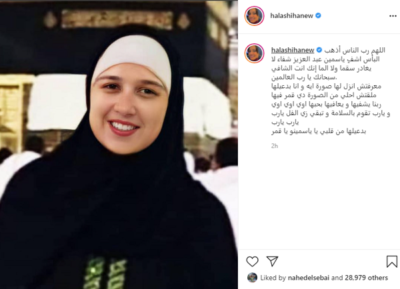 وكتبت حلا شيحة معلقة على صورة قديمة لياسمين عبد العزيز أثناء آداء مناسك العمرة: اللهم رب الناس أذهب البأس اشفِ ياسمين عبد العزيز شفاء لا يغادر سقما ولا الما إنك انت الشافي سبحانك يا رب العالمين.