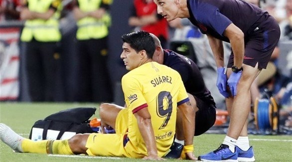 كشف نادي برشلونة الإسباني، اليوم السبت، تفاصيل إصابة المهاجم الأوروغوياني لويس سواريز بساقه اليمنى بعد أن اضطر لمغادرة مباراة فريقه أمام أثلتيك بلباو أمس الجمعة، في انطلاقة الدوري الإسباني.