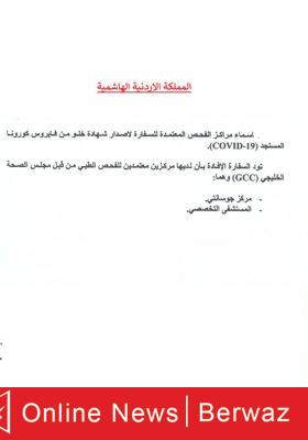 فيما ذكر التعميم أيضًا أسماء المختبرات المعتمدة في كل من مصر ولبنان والأردن وباكستان وتركيا والهند والبوسنة والهرسك وألمانيا وأذربيجان وسويسرا، لافتًا إلى أن كل المعامل الموجودة في ألمانيا هي معامل معتمدة من السلطات الصحية الألمانية، وذلك بناء على إفادة معهد روبرت كوخ.