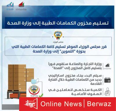 1 أبريل: تسليم مخزون الكمامات الطبية إلى وزارة الصحة