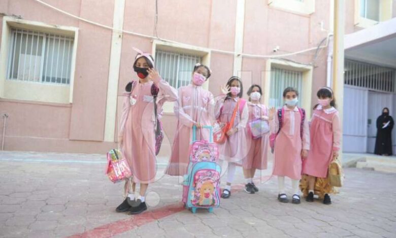 وقالت رئيسة قسم اللجنة الصحية في مدرسة أميمة بنت خلف الابتدائية بنات في منطقة الجهراء عذاري المطوطح إن دخول الطالبات تم وفق خطة التباعد من خلال تخصيص 3 بوابات لدخول طالبات الصفين الأول والثاني على حدة، ثم الثاني والثالث، وباب ثالث للرابع والخامس، مبينة أن فريق التدخل السريع في المدرسة يقيس حرارتهن ثم يستلمهن قسم الإشراف الإداري ومربيات الفصول «الأم البديلة».