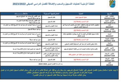 وأشارت الجارالله، اليوم الإثنين، إلى أنه يمكن للطلبة تعديل جداولهم خلال فترات السحب والإضافة الممتدة حتى تاريخ 7 يونيو المقبل، كما هو موضح بالخطة الزمنية.
