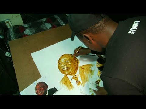 جنوب أفريقيا: فنان يرسم المشاهير باستخدام القهوة!!