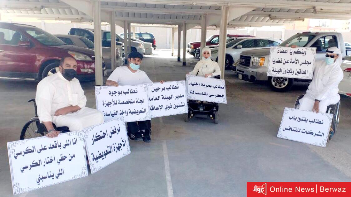 شكل عدد من ذوي الإعاقة وقفة احتجاجية على الكراسي المتحركة رفضا للوضع الحالي في التعامل معهم واشتملت المطالب على حرية إختيار الكرسي المناسب لكل شخص ورفض احتكار الأجهزة التعويضية بجانب المطالبة برحيل رئيس الهيئة العامة لشئون ذوي الإعاقة.