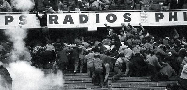 مباشرة بعد إعلان الحكم عن رفضه هدف التعادل لـ البيرو، اندفع أكثر من 30 ألف مشجع من الـ60 ألف الذين حضروا المباراة إلى الملعب، وحاولو الوصول إلى الحكم والإعتداء إليه ثم المرور إلى جانب مدرجات مشجعي راقصي الأرجنتين، وبهذا عمت الفوضى وتسببت في مقتل 318 مناصر أغلبهم من الجانب الأرجنتيني وتخلف أكثر من 500 مصاب أمام عجز تام للقوات الأمنية خاصة بعد إندلاع الحريق في مدرجات الملعب، وتدافع آلاف الجماهير للهروب من القنابل المسيلة للدموع زاد الطين بلة ورفع عدد الضحايا في أمسية تعتبر نقطة سوداء في تاريخ البلدين.