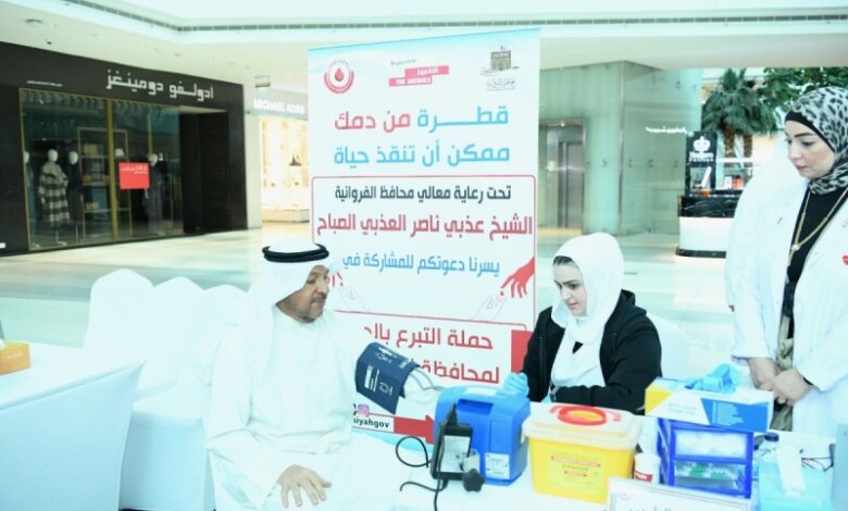 أكد محافظ الفروانية الشيخ عذبي الناصر أهمية تعزيز ثقافة التبرع بالدم باعتبارها قيمة إنسانية تسهم في إنقاذ الأرواح.