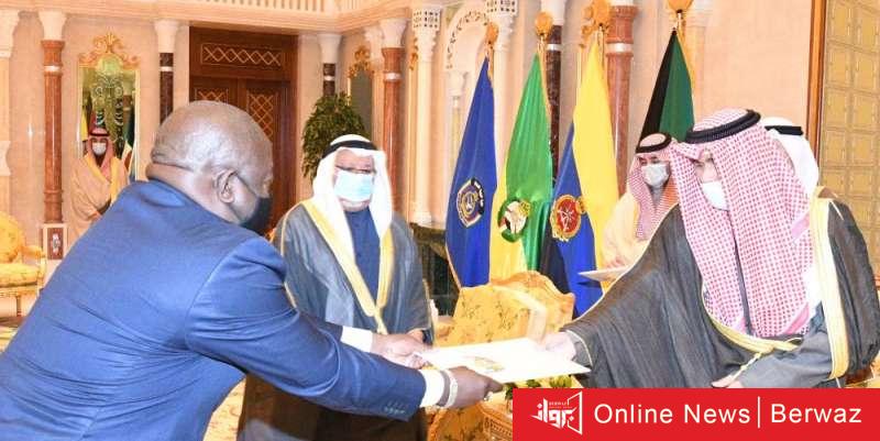 تسلم سمو الأمير الشيخ نواف الأحمد أوراق في قصر بيان، صباح اليوم أوراق اعتماد كل من السفير مرزوق ايسان دانيل سفيرا لجمهورية أفريقيا الوسطى والسفير خوسيه لويس نورييغا سانشيز سفيرًا لجمهورية كوبا والسفير ثانغ توان نجو سفيرًا لجمهھورية فيتنام الاشتراكية والسفير فرانسيسكو ماورو برازيل دي هولاندا سفيرا لجمهھورية البرازيل الإتحادية وذلك كسفراء لبلادهم لدى دولة الكويت.
