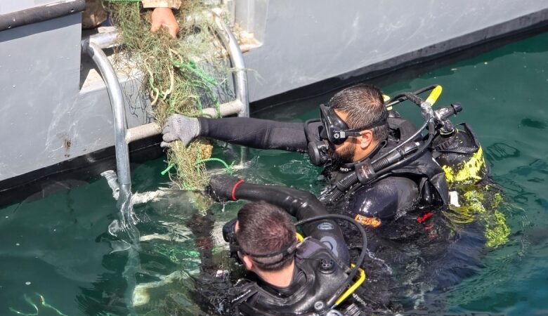ورفع شباك صيد مهملة، وإنقاذ الكائنات والأسماك العالقة فيها حفاظا على الحياة البحرية وسلامة الممرات الملاحية من الحوادث الخطرة على القوارب والسفن.