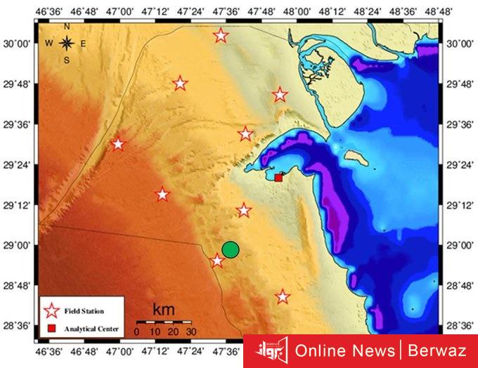 كما ذكر «حدث هذا الزلزال في تمام الساعة 10:12صباحًا بتوقيت الكويت، على عمق 8 كيلومتر في باطن الأرض».