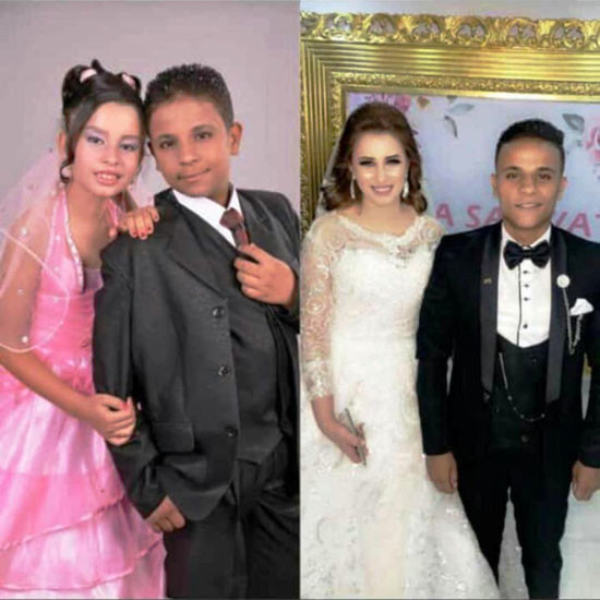 وكان سن العريس شمس حينها لم يتعد 13 عاما وهو تلميذ في الصف الثاني إعدادي، أما العروسة إيمان فكان عمرها 9 سنوات في الصف الثالث الابتدائي.