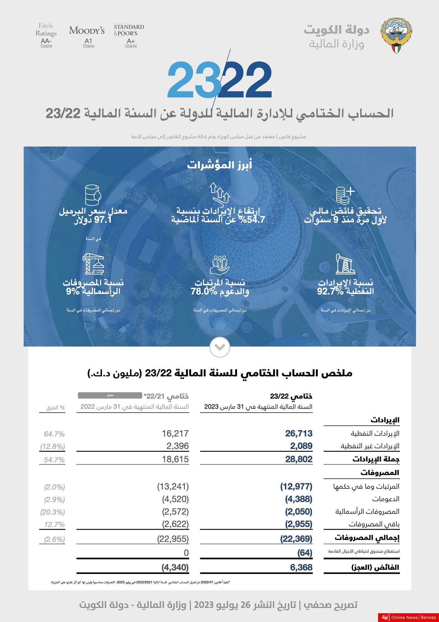 أفصحت وزارة المالية عن الحساب الختامي للدولة للسنة المالية 23/22.