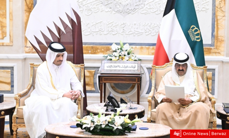 استقبل حضرة صاحب السمو أمير البلاد الشيخ مشعل الأحمد الجابر الصباح، حفظه الله ورعاه، بقصر بيان صباح اليوم، سمو الشيخ أحمد عبدالله الأحمد الصباح رئيس مجلس الوزراء، ومعالي الشيخ محمد بن عبدالرحمن بن جاسم آل ثاني رئيس مجلس الوزراء وزير الخارجية بدولة قطر الشقيقة، والوفد المرافق لمعاليه، وذلك بمناسبة زيارته الرسمية للبلاد.