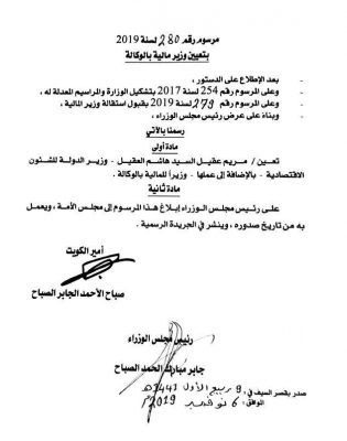 صدور مرسوم بقبول استقالة الحجرف وتعيين العقيل وزيرة للمالية بالوكالة