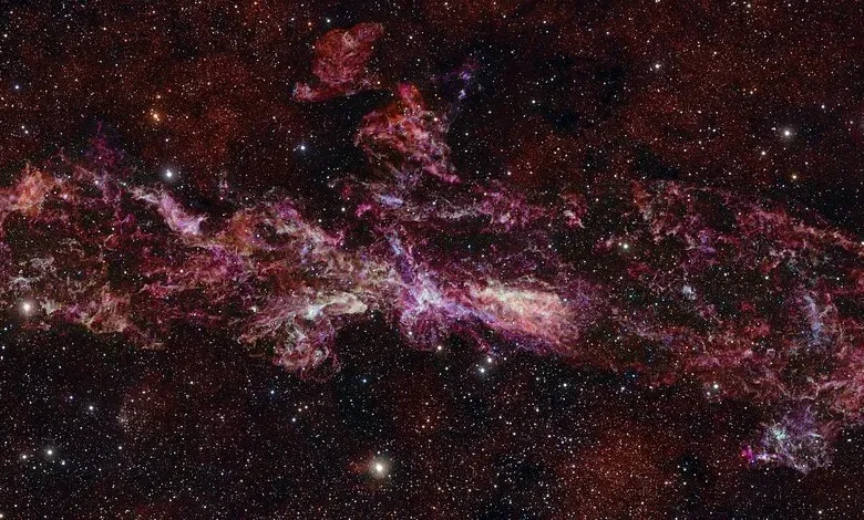 وتُظهر الصورة شبكة واسعة من خيوط الغاز الممتدة مئات السنين الضوئية وسحبا كثيفة تتشكل فيها نجوم جديدة، بالإضافة إلى تجاويف وفقاعات ضخمة نحتتها انفجارات نجمية.