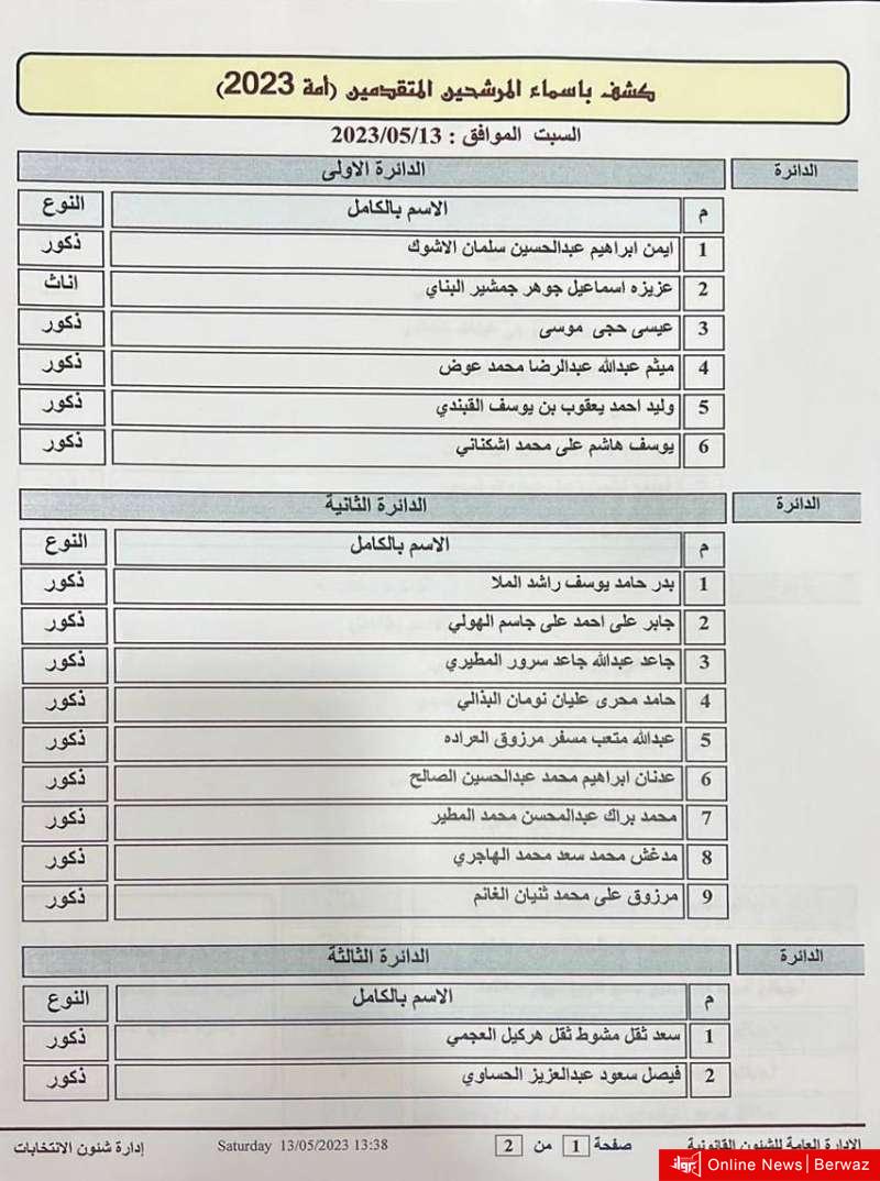 وكان من بين المتقدمين للترشح عن الدائرة الأولى عزيزة البناي وعيسى حجي موسى