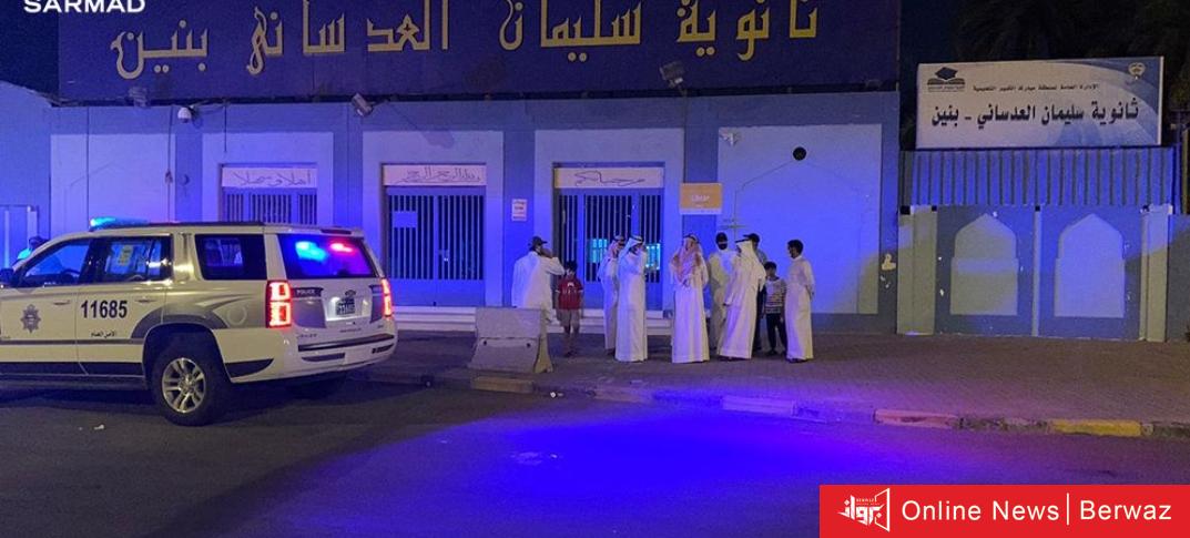 تجمع عدد من المواطنين أمام مدرسة ثانوية سليمان العدساني بمحافظة الجهراء تضامناً مع حارس الأمن المصري.