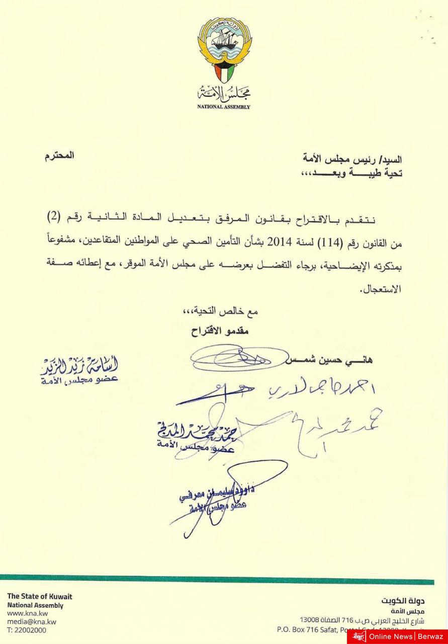 الجدير بالذكر أن النواب مقدمي الإقتراح هم هاني شمس وأحمد لاري وحمد المدلج وداود معرفي وأسامة الزيد.