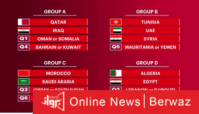 وجاءت مجموعات كأس العرب على النحو التالى: