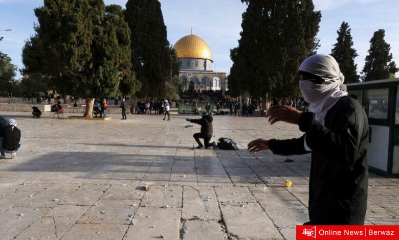 وقال الهلال الأحمر الفلسطيني إن عشرات الإصابات بالاختناق وقعت جرّاء إطلاق الاحتلال قنابل الغاز في المسجد الأقصى.